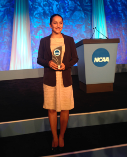 Gracias a su preparación académica y deportiva, Mónica recibió una beca completa para jugar fútbol y estudiar en la Universidad de West Florida, donde obtuvo su título en Administración Deportiva y recibió importantes reconocimientos por su destacada labor deportiva, académica y su gran liderazgo.